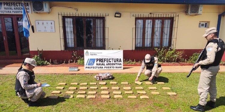 El procedimiento se llevó adelante en el Puerto Natural EFA, luego de que los efectivos de Prefectura localizaran un bulto oculto entre la maleza del lugar. Al requisarlo, se constató que se trataba de 38 panes de marihuana prensada.