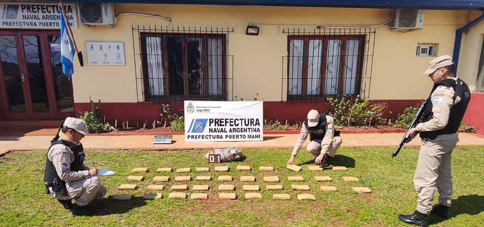 El procedimiento se llevó adelante en el Puerto Natural EFA, luego de que los efectivos de Prefectura localizaran un bulto oculto entre la maleza del lugar. Al requisarlo, se constató que se trataba de 38 panes de marihuana prensada.
