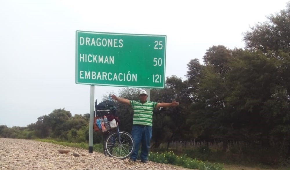 En aquel lugar pudo arreglar nuevamente su bicicleta y seguir camino hasta Villa General Güemes (Formosa), hasta llegar a la provincia de Salta y de ahí pasar a Jujuy, donde se encuentra actualmente.