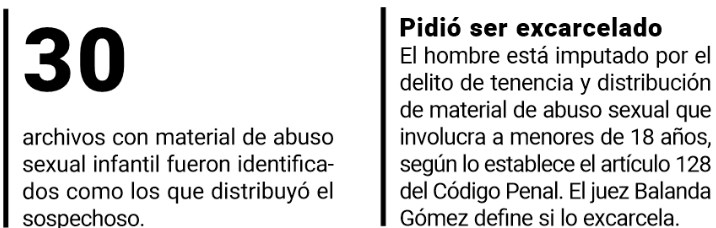 El hombre fue imputado por el delito de tenencia y distribución de material sexual explícito que involucra a menores de 18 años, según lo establece el artículo 128 del Código Penal Argentino.