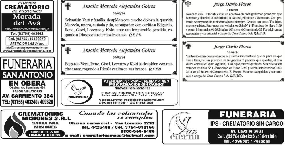 • Fúnebres del Sabado 31 de Agosto de 2024