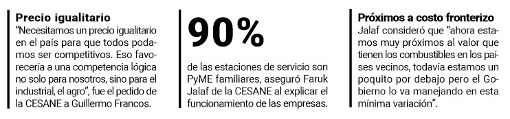 Faruk Jalaf dijo que Francos lo escuchó muy atentamente y, sabiéndolo titular al Jefe de Gabinete de una PyME, “le recordé que en Misiones el 90% de las estaciones son PyME que se mantiene porque las atiende la familia y un 10% que son de empresas importantes con varias estaciones”.