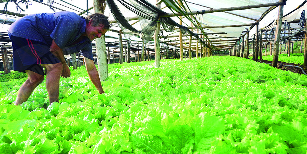 A poco más de tres kilómetros de la ruta provincial 3, Alberto planta lechuga, espinaca, rúcula, repollo, aunque este último está complicado, “no sé que está pasando”, reconoció. También, suma cebollita, perejil, “que siempre se venden”, batata, mandioca y pepino, que comercializa desde hace ocho años en el mismo espacio. Además, dos veces al mes dice presente en la feria de Jefatura.