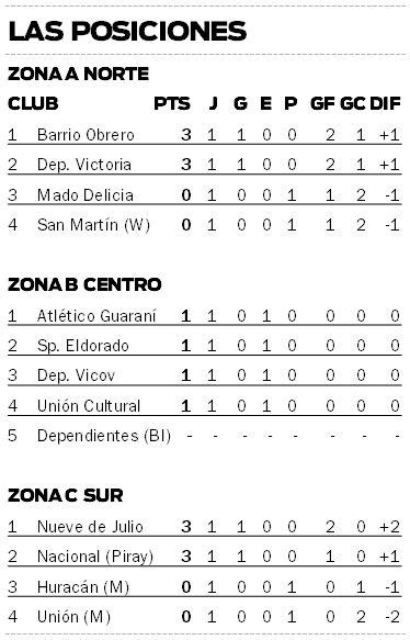 En cuanto a la Zona A Norte, Deportivo Victoria le aguó la fiesta al vigente campeón San Martín de Colonia Wanda, tras imponerse por 2-1 con goles de Nicolás Brítez y José “La Joya” Silva. El Depor quiere recuperar el protagonismo perdido y así lo hizo saber desde el arranque del campeonato.