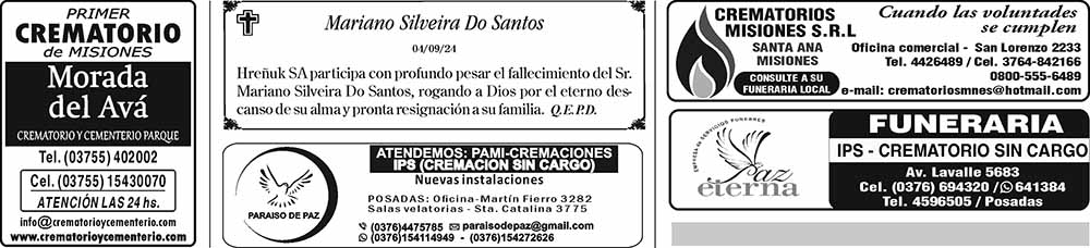 • Fúnebres del Miércoles 4 de Septiembre de 2024
