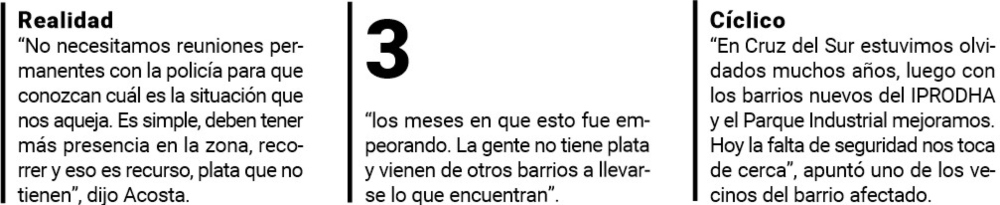 Cada vez son más los hechos de inseguridad que viven los vecinos de los barrios más humildes de Itaembé Guazú ubicados en cercanías del Parque Industrial, que solicitan la intervención de la policía con mayor presencia no solamente en horario nocturno sino también diurno, ante los casos de arrebatos y robos que se suceden a diario. Afirman que “creció la población en la zona, hay mucha gente que se quedó sin trabajo y la dura situación económica golpea fuerte, hay quienes no tienen para comer y son capaces de salir a conseguir de cualquier manera”, indicó Roberto Acosta, uno de los vecinos que se refirió a la problemática.