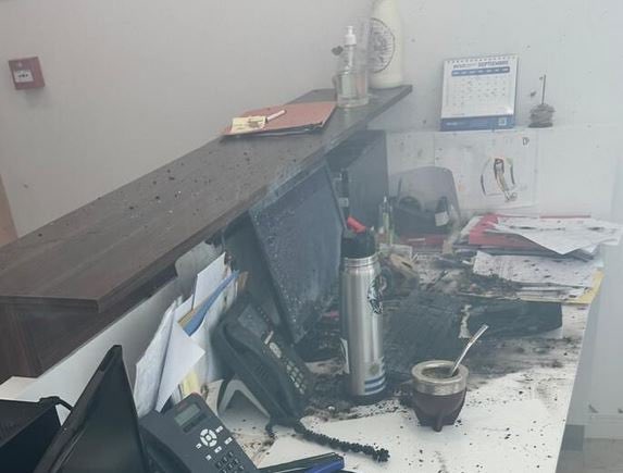 Tras la detonación, una foto del lugar mostró daños visibles en el escritorio del presidente de la SRA, con papeles y el tablero de una computadora parcialmente quemados.