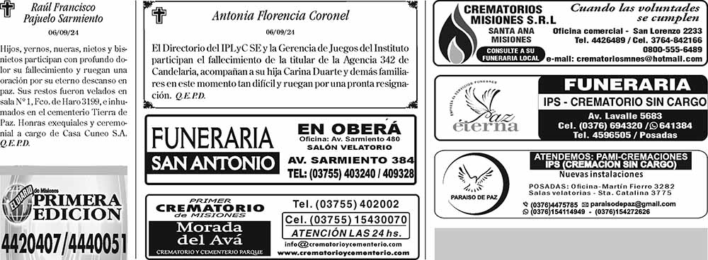 Fúnebres del Sábado 7 de Septiembre de 2024