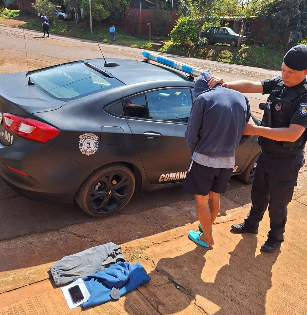 Tras tomar conocimiento de lo sucedido, personal de dicha seccional obtuvo parcialmente la identidad del sospechoso, por lo que se alertó a las demás dependencias. Fue así que efectivos del Comando Centro, en base a pistas y datos, ubicaron al individuo en el barrio Cien Hectáreas de dicha localidad y procedieron a detenerlo en averiguación del hecho.