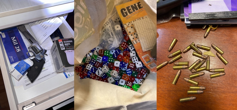 En una de las viviendas, los agentes detuvieron al hombre de 31 años y secuestraron una ruleta, dados, cartas, fichas, bebidas alcohólicas, múltiples pastillas, tres cajas fuertes, una máquina de contar billetes, una gran cantidad de cédulas de automotores, balanzas de precisión, municiones calibres 22 y 32, y dinero en efectivo.