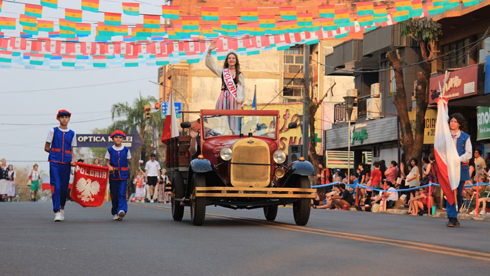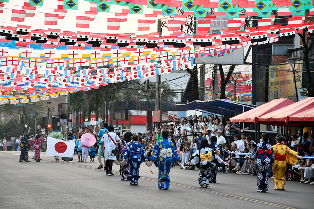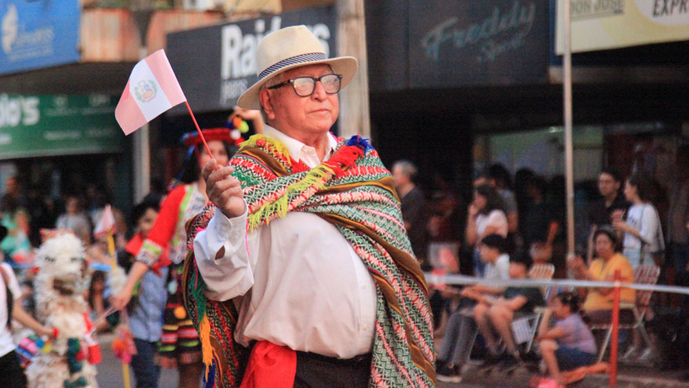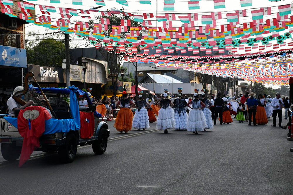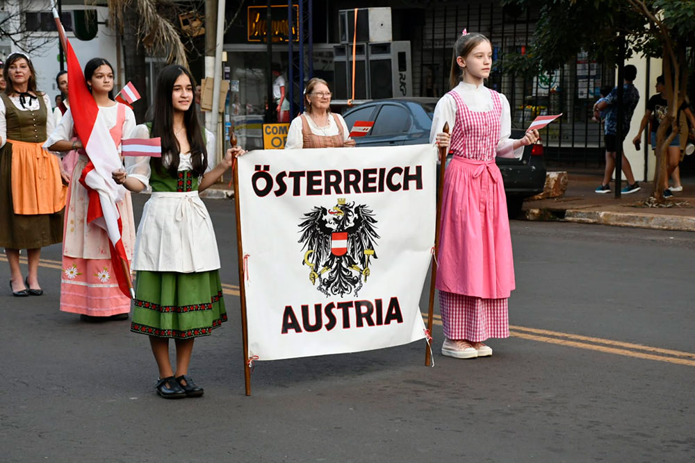 Jóvenes y adultos de la comunidad eldoradense participaron del tradicional desfile, con ropas típicas y espíritu de integración.