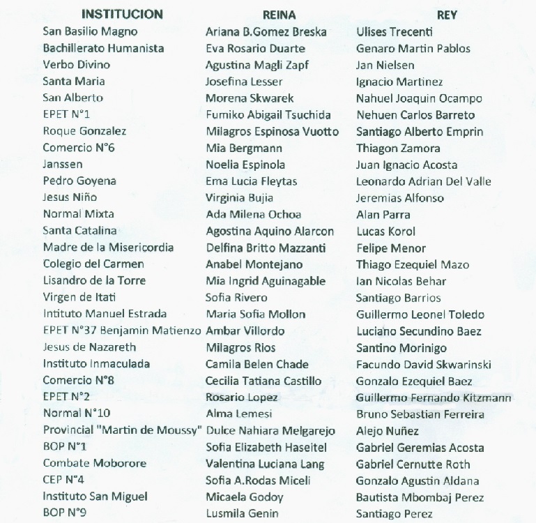 Uno de ellos, es el CEP 4, que por primera vez en la historia de dicho colegio presentará a postulantes en esta elección por la corona; la restante escuela es el Instituto José Manuel Estrada.