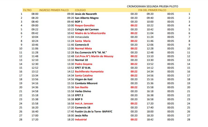 Además, Martina Kaminski, presidente de APES informó en su momento en dialogo con PRIMERA EDICIÓN que este jueves 12 de septiembre (si las condiciones meteorológicas lo permiten) se va a llevar a cabo la segunda prueba piloto, con este cronograma: