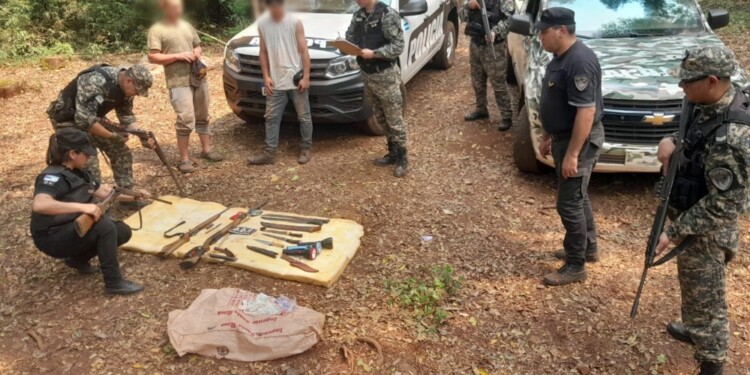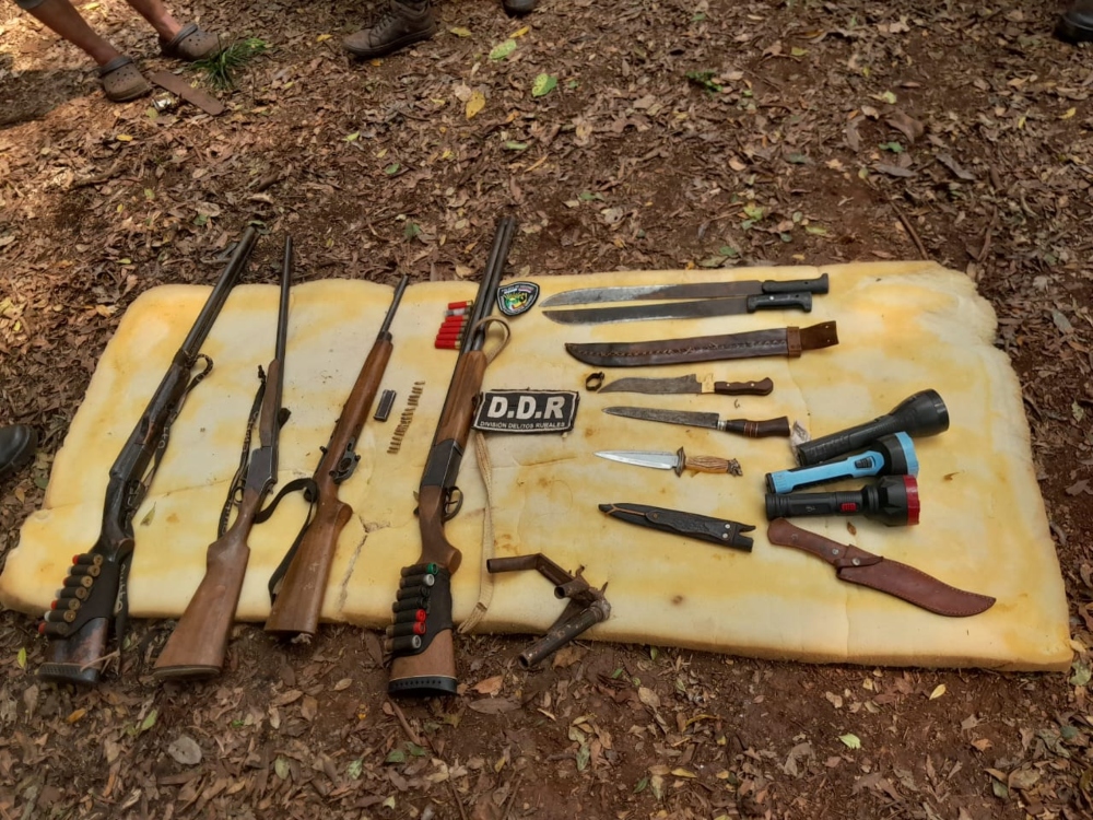 Los efectivos policiales incautaron armas y otros elementos. Siguen los rastrillajes para dar con los presuntos cazadores.