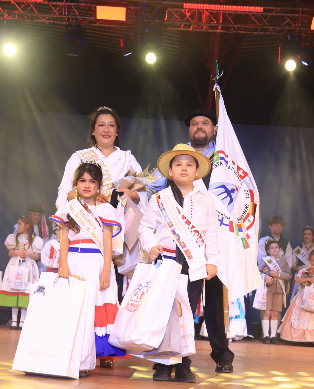 Previo al momento culminante de la coronación, se realizó la tradicional presentación de los Reyes Mayores y Principitos, seleccionados mediante sorteo. En esta ocasión, los pequeños representantes de la Colectividad Paraguaya, Isabella Jazmín Zabala (6 años) y Saúl Emanuel Arzamendia (8 años), fueron elegidos como los Principitos. Por su parte, los Reyes Mayores elegidos fueron Karla Teresa Salina y Hugo Orlando Romero, de la Colectividad Francesa.