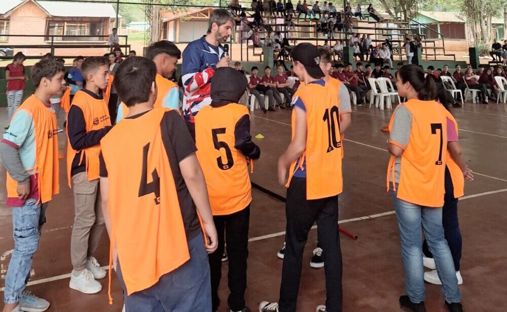 En el predio de la Fiesta del Agricultor de la ciudad misionera de Comandante Andresito, más de 100 estudiantes del nivel primario y secundario, junto a entrenadores y referentes deportivos del municipio, fueron parte de una entretenida jornada enmarcada en el Programa Valores en Movimiento del Ministerio de Deportes.