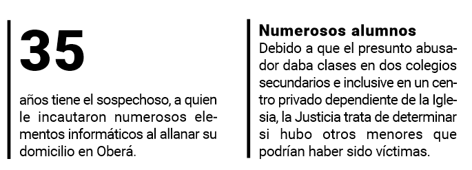 En ese sentido trascendió que sería desde hace al menos dos años que el profesor se comunicaba con la adolescente, donde le habría realizado propuestas indebidas. El acusado daría clases de música en dos colegios secundarios y en un centro privado que dependería de la Iglesia, todo en la ciudad de Oberá, por lo que la investigación también apunta a determinar si no hubo otras posibles víctimas. La joven cuyo padre radicó la denuncia declararía en Cámara Gesell en los próximos días, informó un vocero.