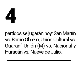 Por la Zona C Sur, Unión de Montecarlo recibirá desde el mismo horario a Nacional de Puerto Piray -arbitraje de Diego Chávez- y Huracán hará lo propio desde las 16.30 ante Deportivo Nueve de Julio (Juan Carlos Franco, el árbitro).