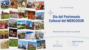 Los ministros de Cultura del Mercosur establecieron en 1997 que cada 17 de septiembre se conmemore el Día del Patrimonio Cultural del Mercosur, entendido como los bienes materiales (edificios, documentos, obras de arte, sitios arqueológicos o monumentos) que dan identidad a la región, sino también las expresiones y manifestaciones de carácter inmaterial, como tradiciones, historias, relatos, recetas, cantos, músicas y conocimientos que se transmiten de generación en generación.