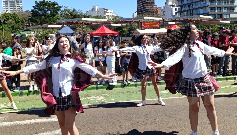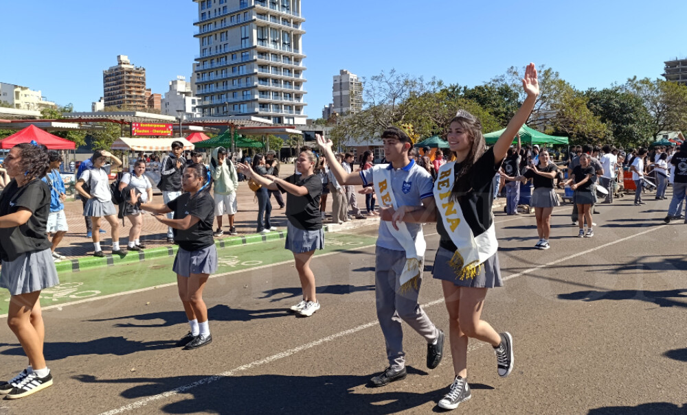 La cita, llena de color y ritmo, en un día soleado que acompaña, nuclea a los estudiantes posadeños, a sus padres, a los maestros, profesoras y demás directivos de los colegios de la ciudad.