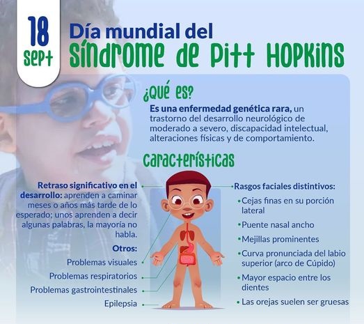 El 18 de septiembre se celebra el Día Mundial del Síndrome de Pitt-Hopkins, una enfermedad extremadamente rara que cuenta con muy pocos casos diagnosticados en todo el mundo. Se trata de un trastorno del desarrollo neurológico, caracterizado por retraso mental y retraso en el desarrollo, acompañados de problemas respiratorios, convulsiones recurrentes (epilepsia) y rasgos faciales característicos. Está causada por una mutación genética y fue descrita por primera vez en 1978.