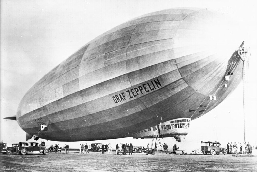 El 18 de septiembre de 1928 volaba por primera vez en Alemania el Graf Zeppelin, la aeronave más grande de la historia con un largo de 236 metros y un volumen de 105 mil metros cúbicos de carga de hidrógeno. Poseía cinco motores y podía transportar cargas de hasta 60 toneladas. Bautizada con el nombre del pionero de la aviación alemana, el conde Ferdinand Zeppelin, realizó 600 viajes y cruzó 150