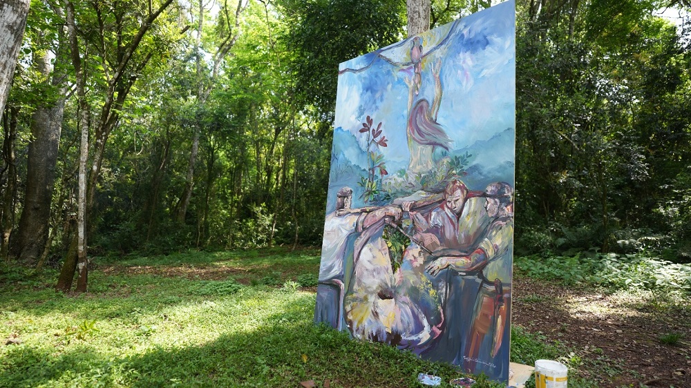 La Reserva Tupambaé, uno de los puntos turísticos más visitados de capital yerbatera, se transformó en un espacio de creatividad y expresión, donde la comunidad pudo disfrutar de la fusión de arte y cultura. Una actividad artística que promociona la riqueza natural y cultural de la región.