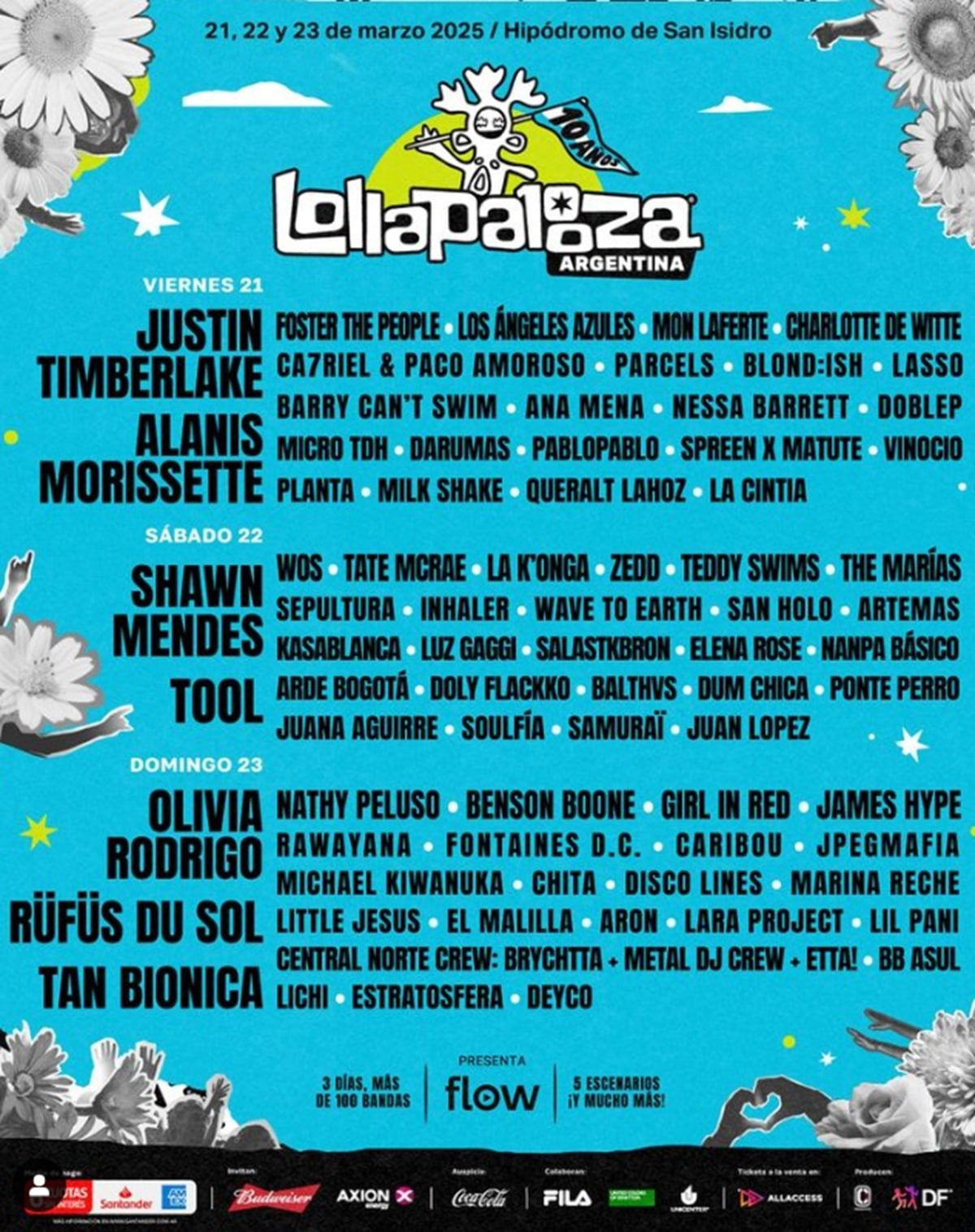 Después de haber dado a conocer los artistas que formarán parte de su amplia grilla, el festival Lollapalooza Argentina acaba de revelar el line-up por día de su edición 2025, que tendrá lugar los días 21, 22 y 23 de marzo en el Hipódromo de San Isidro.