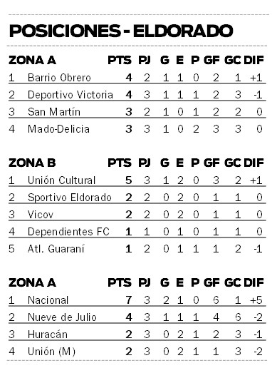 Parcialmente se cumplió el pasado fin de semana con la tercera fecha del Torneo Clausura “Juan Carlos Fraser” de la Liga de Fútbol de Eldorado, donde los únicos que pudieron triunfar y celebrar fueron Asociación de Clubes Mado-Delicia y Unión Cultural y Deportiva Eldorado.