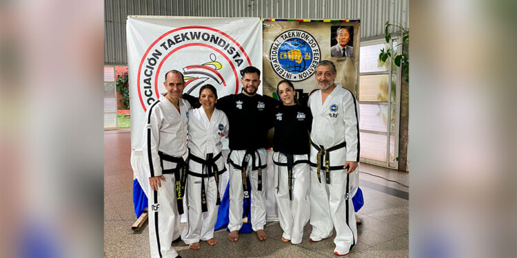 Al término del seminario, se juntaron para la foto (de izquierda a derecha): Sabum Nim Fabián Rodríguez (Alem), Sahyun Nim Karina Alonso, Sabum Nim Martín Gadea, BooSabum Nim Fernanda Sanchis y Sabum Nim Mariano Vaena.