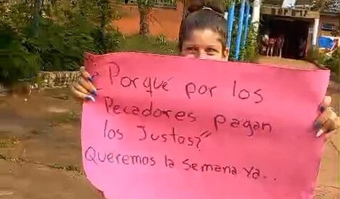 Alumnos del BOP 17 de Posadas realizaron una protesta con carteles reclamando poder celebrar la Semana del Estudiante.