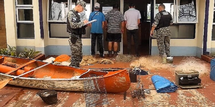 En poder de los cazadores ilegales, los agentes encontraron una escopeta calibre 14 con 12 cartuchos, un rifle calibre 22 con 12 cartuchos, seis redes de 200 metros, una piragua, una conservadora con varios peces (especies dorados y tararira), machetes y un espinel.