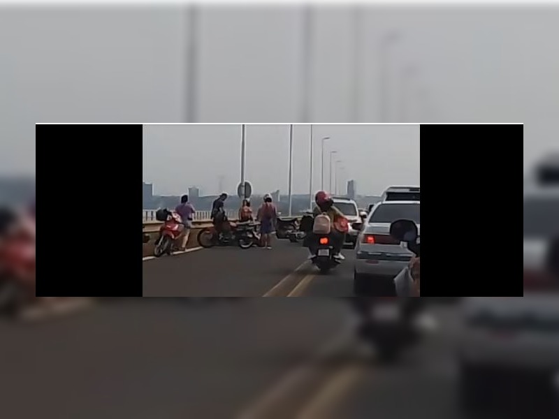 Un hombre y una mujer resultaron este lunes con importantes lesiones, luego que la motocicleta donde viajaban impactó con una camioneta en el Puente Internacional San Roque González de Santa Cruz, que conecta las ciudades de Posadas y Encarnación.
