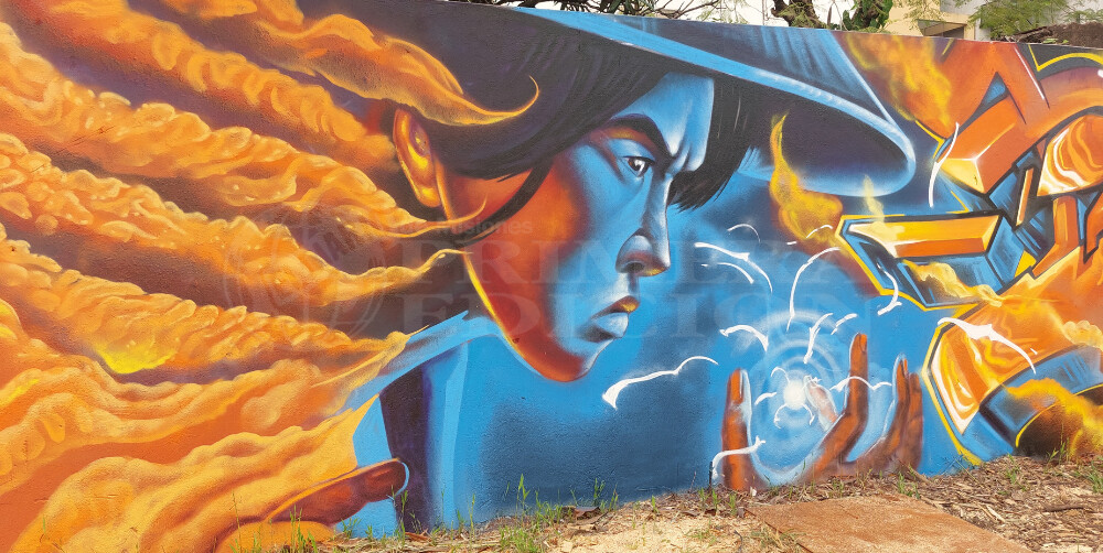 “Surgió la idea de hacer algo con una temática media japonesa, fusionamos estilos, y eso es algo que generalmente se hace en el graffiti: trabajar con varios artistas, intervenir en la obra de otro y terminar creando una pieza total entre todos”, explicó el artista.