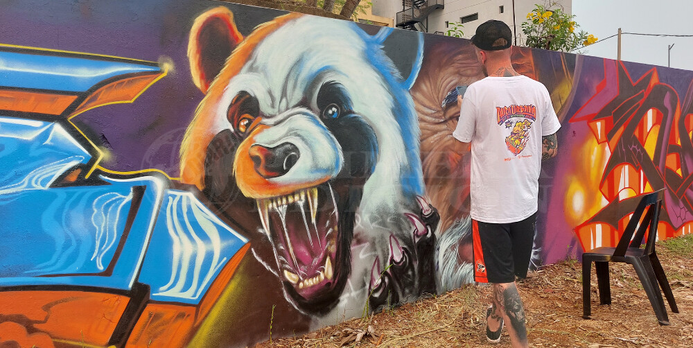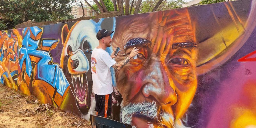El artista misionero es una de las figuras destacadas, contribuyendo con una impresionante obra en estilo realista que llamó la atención de todos. El rostro, creado con aerosol y desarrollado durante los cuatro días del evento, es el resultado de unas 10 horas de trabajo.