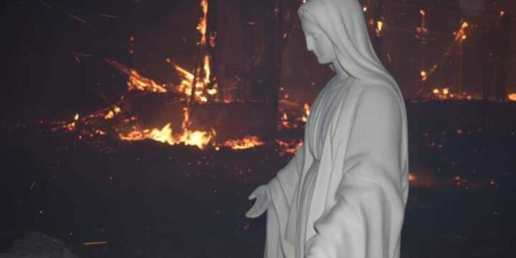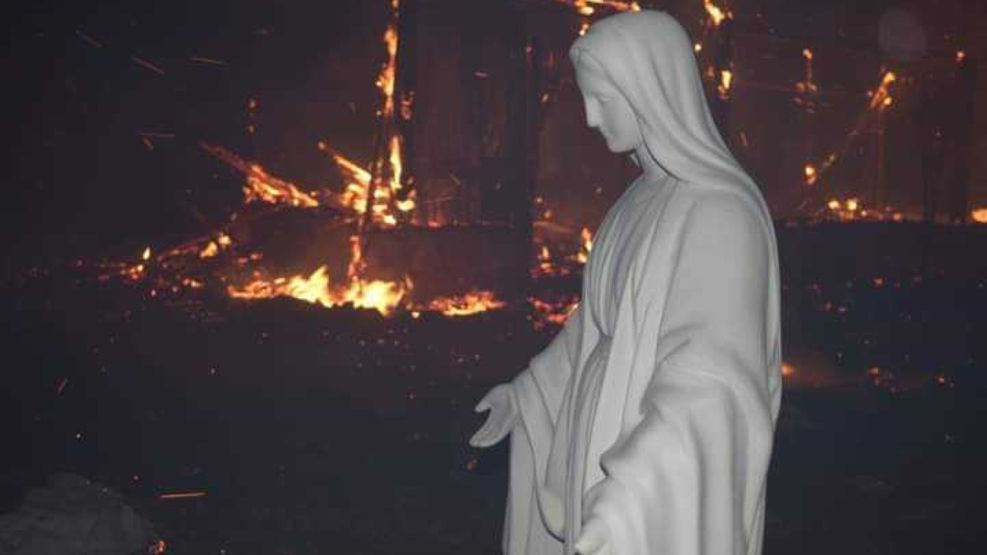 En medio del caos, un hecho sorprendente capturó la atención de todos: en el Centro Mariano del Espíritu Santo, entre Ongamira y Quebrada de la Luna, una imagen de la Virgen quedó completamente intacta a pesar de que las llamas destruyeron todo a su alrededor.