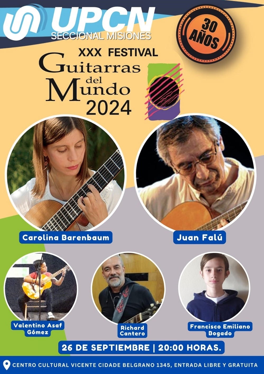 Cabe señalar que en el hall del Centro Cultural Cidade, el público podrá disfrutar de una muestra fotográfica y recortes de diarios que rememorarán estos 30 años del Festival Guitarras del Mundo que se celebró de manera ininterrumpida en todo el país.