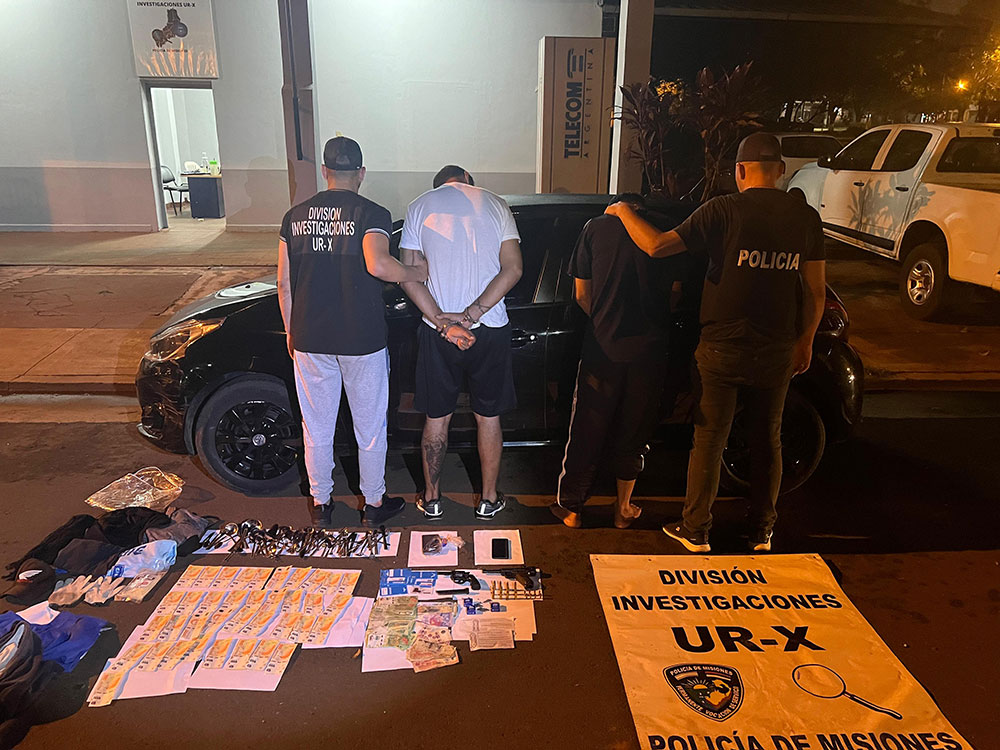 También se incautaron en el mismo procedimiento armas de fuego, radios portátiles con la frecuencia policial, dinero en efectivo, varios chips y objetos como ser un juego de cubiertos que se cree fueron sustraídos en el golpe en Cerro Azul. Además, un teléfono celular que incriminaría seriamente a los arrestados en la causa, teniendo en cuenta que pertenecería al empresario maderero damnificado por el robo y que ya había sido desbloqueado.