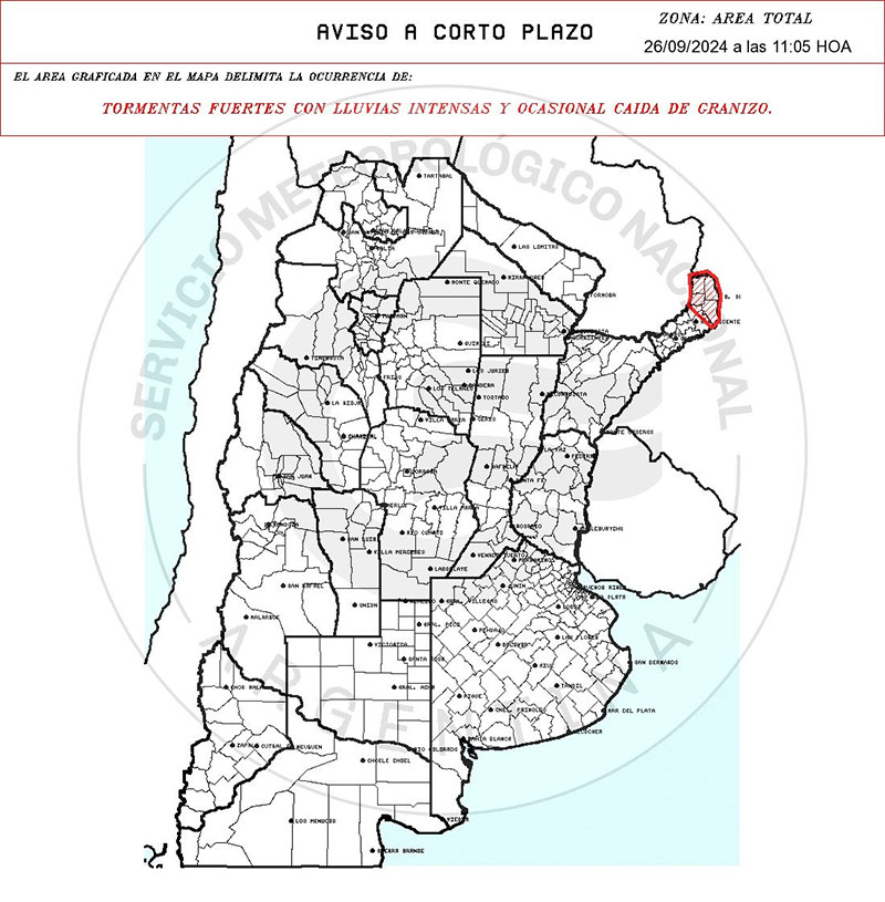 Por último, recordó que para las lluvias que se esperan en la zona centro y norte de la provincia durante la tarde, podrían registrarse ráfagas de hasta 60 kilómetros por hora.