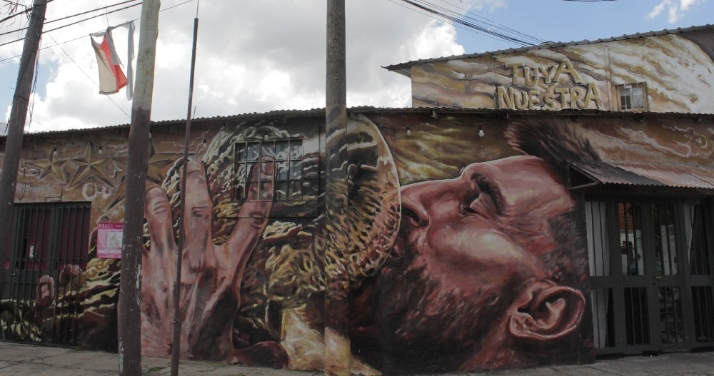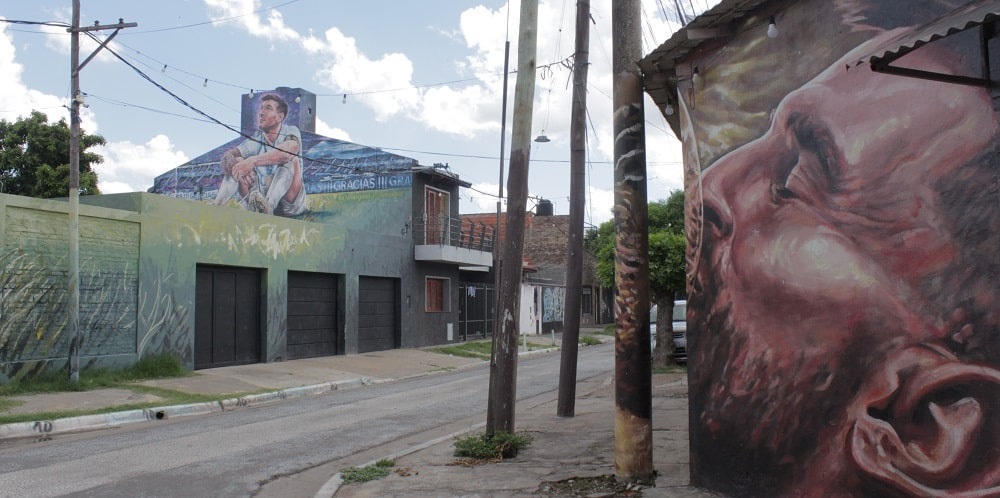 Este recorrido comienza con un mural en la casa de su infancia que hoy, además, es un lugar de interés turístico. Continúa en términos de proximidad con “Campeones del mundo”, en la calle Estado de Israel esquina 1° de Mayo, ambos del colectivo de artistas.
