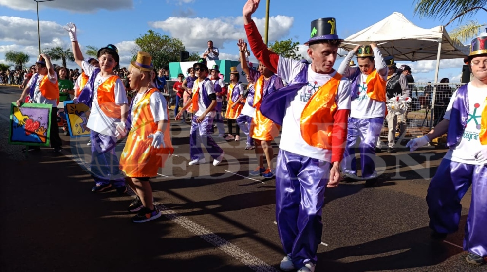 Esta emotiva ceremonia dio paso primero al desfile de la “Murga de los Derechos” de IntegrArte el taller de artes plásticas y juegos teatrales para personas con discapacidad que pertenece a la Dirección Educación Inclusiva dependiente de la Secretaría de Salud de la Municipalidad de Posadas.