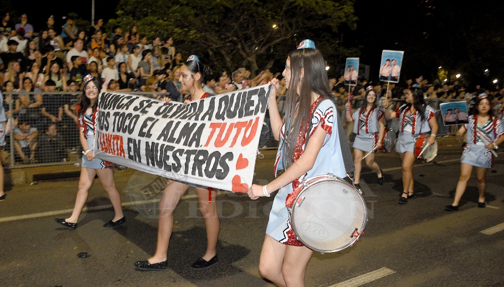En la segunda noche de la Estudiantina 2024, el recuerdo de Luca y Juan Cruz estuvo más vivo que nunca en el paso del colegio Santa María por los palcos de la Costanera posadeña.