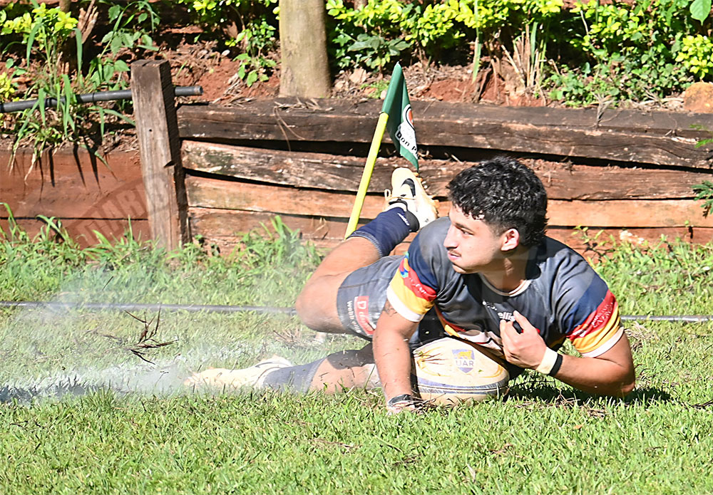 En medio de una lucha dura y pareja, el “Azzurro” tomó ventaja cuando el wing Tomás Estigarribia se cortó solo por la izquierda y luego de sortear el tackle rival apoyó un nuevo try para poner a CAPRI 24-17 arriba tras la gran conversión de Agustín Caro.