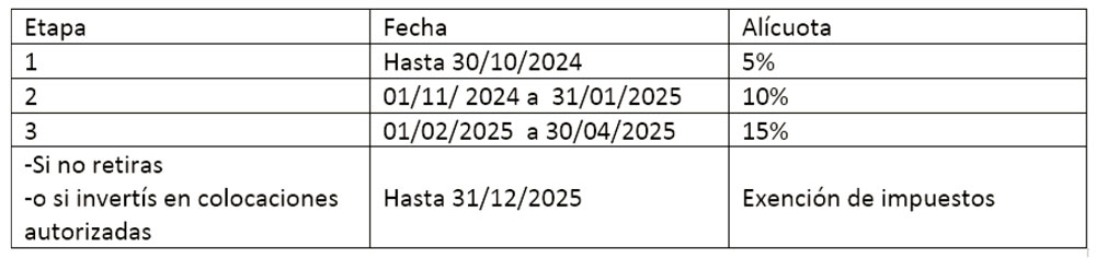 Etapa 1 (hasta el 30 de octubre de 2024): alícuota del 5%.