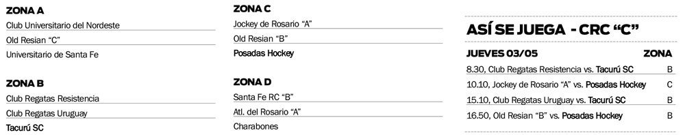 Posadas Hockey, que en 2023 tuvo su debut absoluto en los Regionales de la CAH, integra la Zona C junto a Jockey Rosario “A” y Old Resian “B”. Su estreno será mañana desde las 10.10 ante Jockey Rosario “A” en la cancha de su rival, mientras que a partir de las 16.50 se medirá ante Old Resian “B”.
