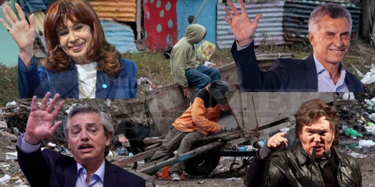 Tras dos mandatos, Cristina Fernández de Kirchner se fue dejando una pobreza de 30,1%. Mauricio Macri pidió ser evaluado cuando la pobreza era del 29% y se fue dejando 35,4%. Alberto Fernández dejó el poder con un escalofriante 41,7%.