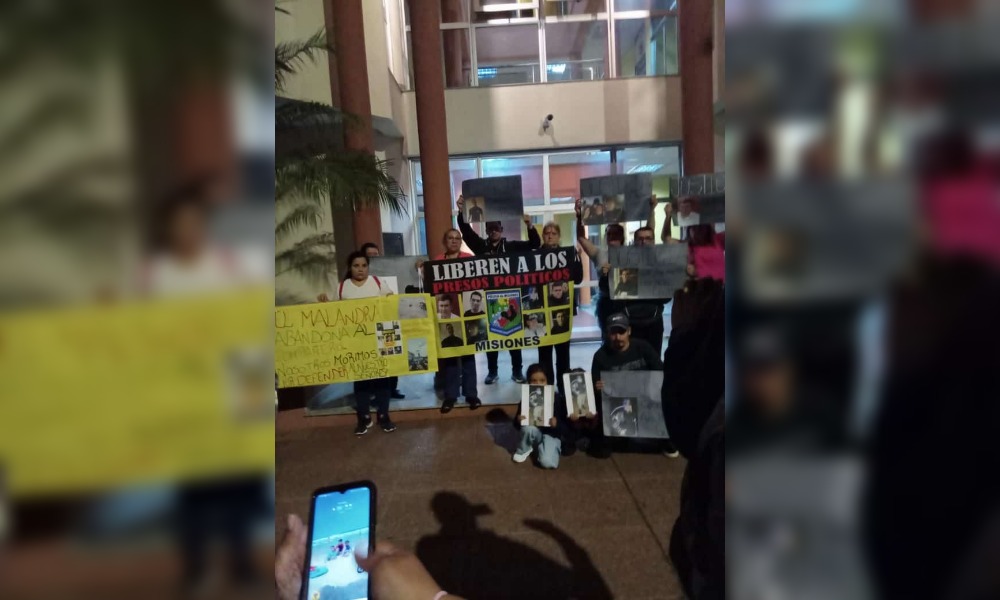 Este viernes, familiares de los acusados se manifestaron frente a la sede de la Jefatura de Policía por calle Félix de Azara, con carteles donde manifestaron críticas al accionar judicial y denominaron a sus allegados como “presos políticos”, por lo cual exigieron la liberación.
