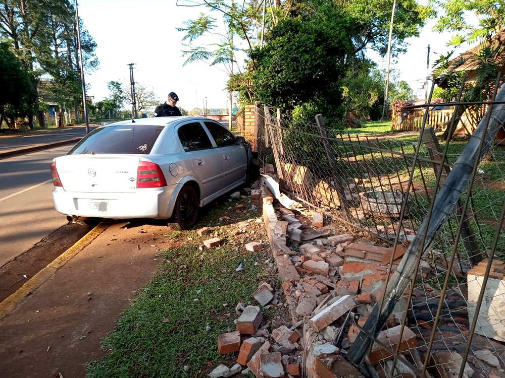 Este sábado, alrededor de las 10 de la mañana, se registró un accidente en la avenida Dr. Fechter de Montecarlo, cuando un automóvil Chevrolet Astra, conducido por un joven de 24 años identificado como Ezequiel, se despistó y terminó colisionando contra el muro perimetral de una vivienda.