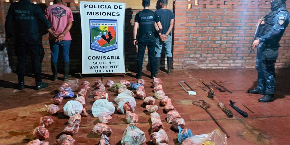 En un operativo llevado a cabo anoche en la localidad de San Vicente, la Policía de Misiones detuvo a dos hermanos, de 28 y 25 años, acusados de robar y faenar un animal vacuno perteneciente a un colono de la zona. Durante el allanamiento en su domicilio, los agentes incautaron un total de 130 kilos de carne recién faenada, además de diversas herramientas que habrían sido utilizadas para cometer el delito.