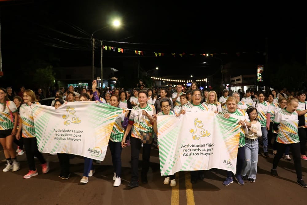 También hicieron su presentación los ballets y cuerpos de danza, patín, clubes como el Atlético Alem, Iguazú, etc., las bicicletas del grupo MTB y antes de ellos la presencia de autos antiguos y también quienes corren distintas categorías del Rally en Misiones y el país y, claro, no podían faltar las motos del grupo La Piara.